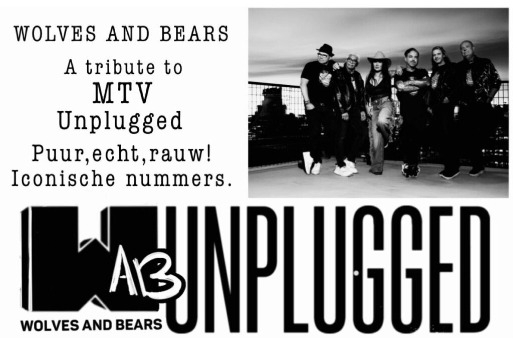Stel je voor: geen poespas, geen glitter and glamour, geen backing tracks, alleen pure, rauwe en eerlijke versies van de allerbeste MTV Unplugged-sessies ooit. Alanis Morissette, Bryan Adams,U2, Sting, Bon Jovi,Aerosmith iconische songs uit de 70, 80 , 90 jaren en natuurlijk hun eigen werk zoals I Bagus you, Only the wolves, Scum of the earth, Close to insanity en het wonderschone I’ll be okay, in een acoustics jasje. Allemaal in één onvergetelijke avond gebracht door WOLVES AND BEARS.